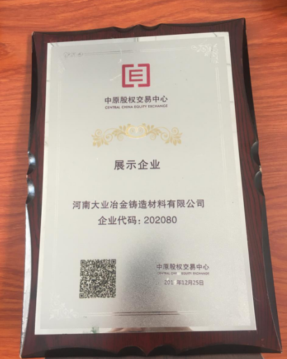 河南大業(yè)冶金鑄造材料有限公司2017年12月中原股權(quán)交易中心掛牌
